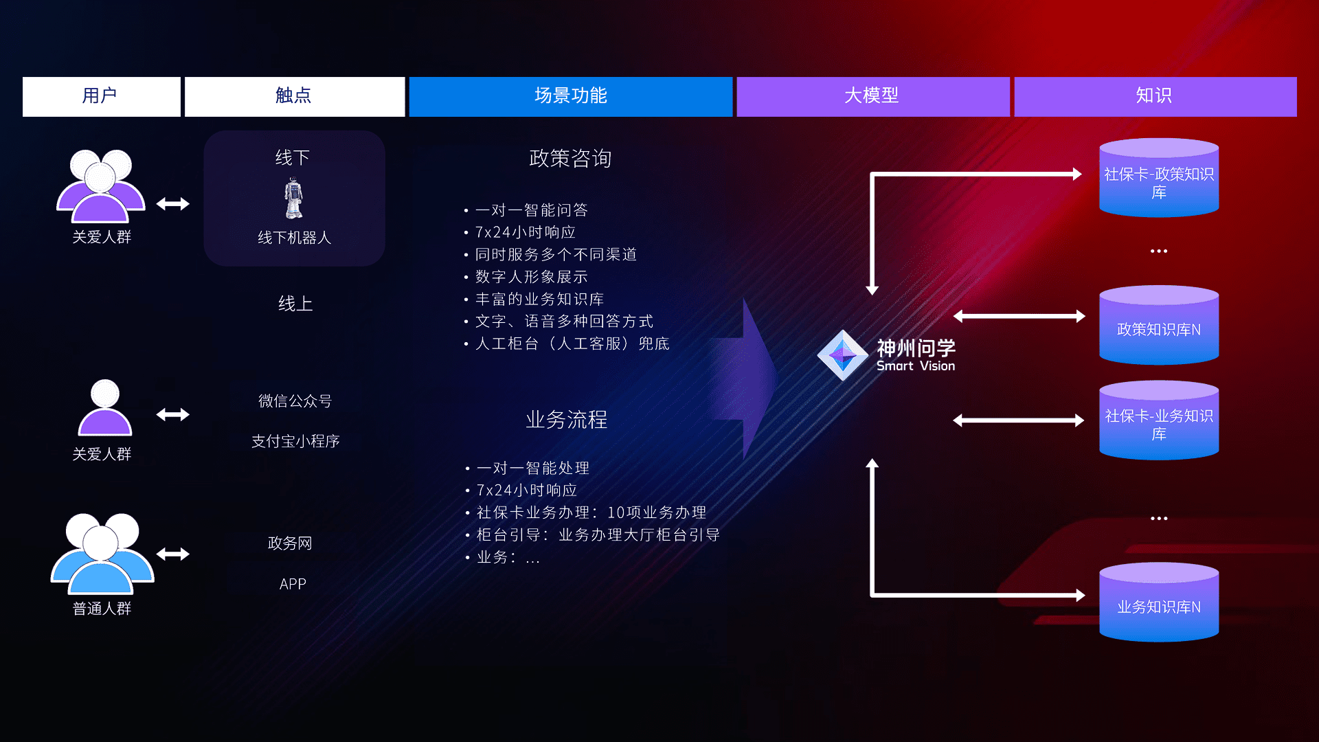 • 线上线下全覆盖:线上提供微信公众号、、、支付宝小程序、、、、政务网、、、、app多种渠道,,,,与线下机器人形成完整服务体系。。。。